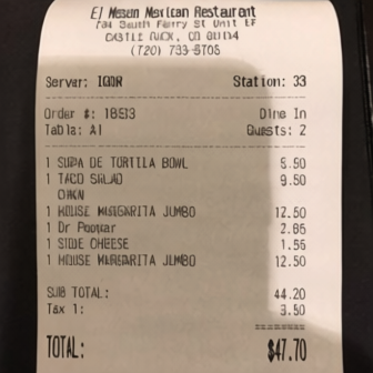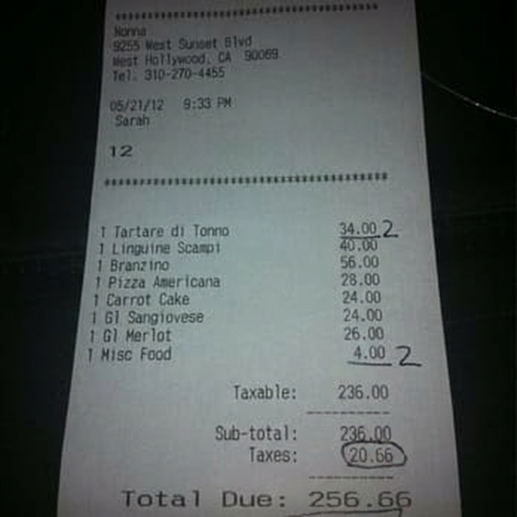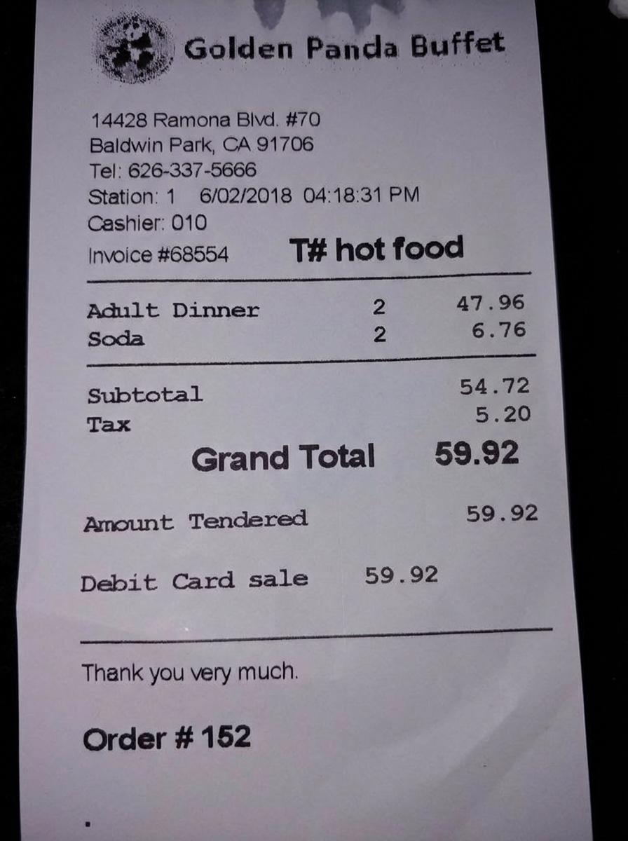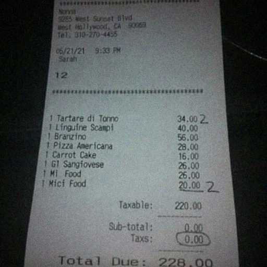 “Edit this receipt image to exactly double the total amount and all intermediate monetary values, including line item prices, subtotal, tax amount, total, and any other amount necessary. Keep everything else in the photo exactly the same.”
