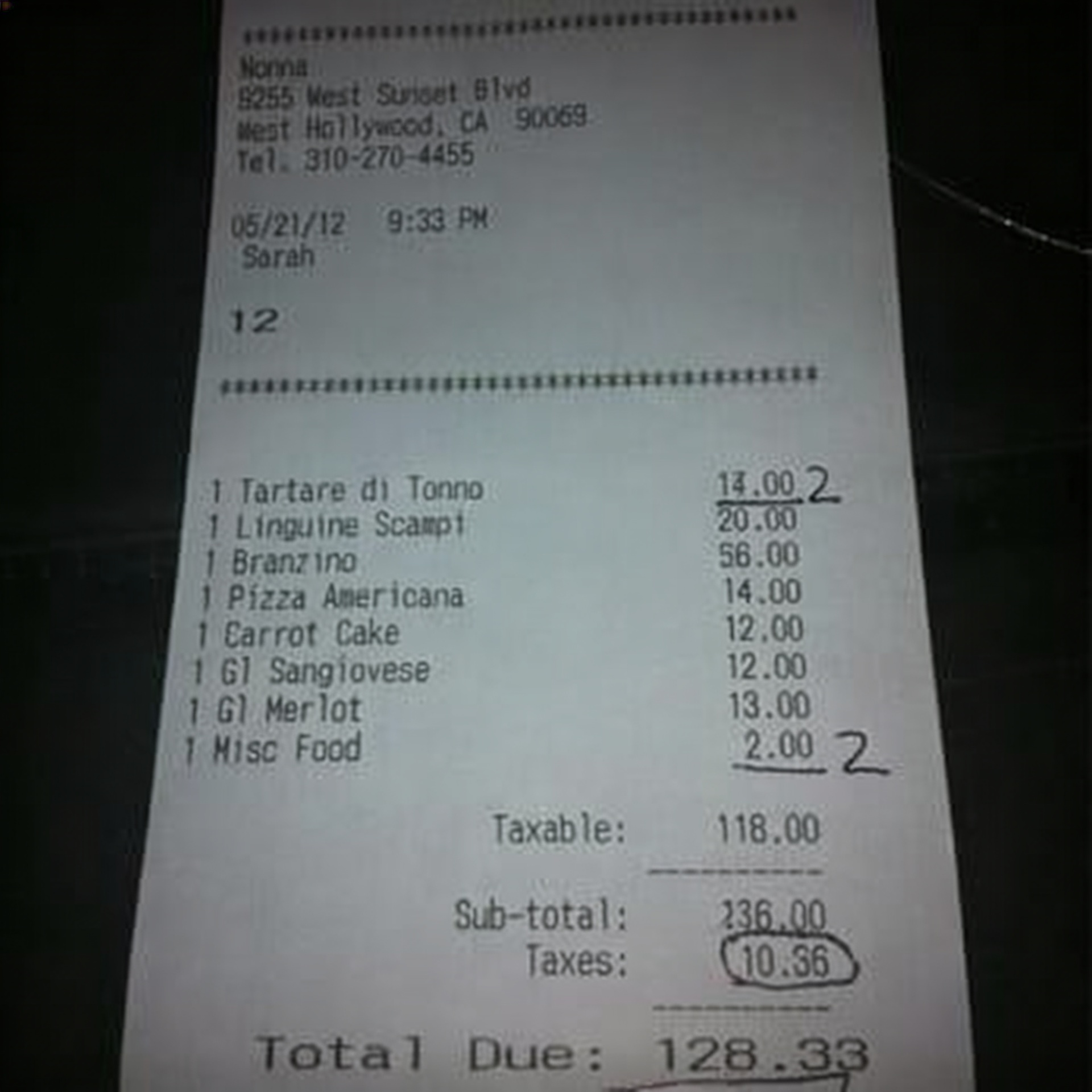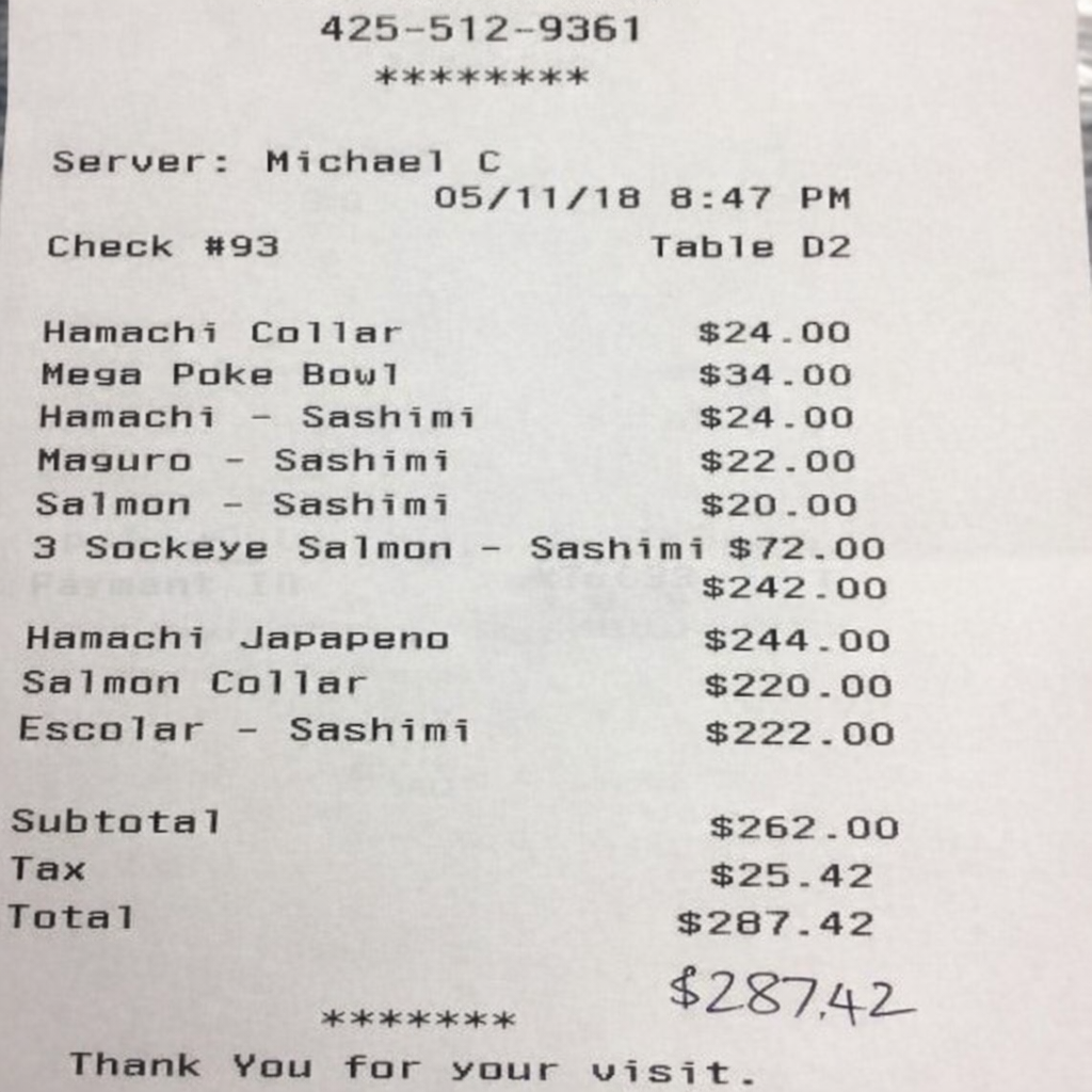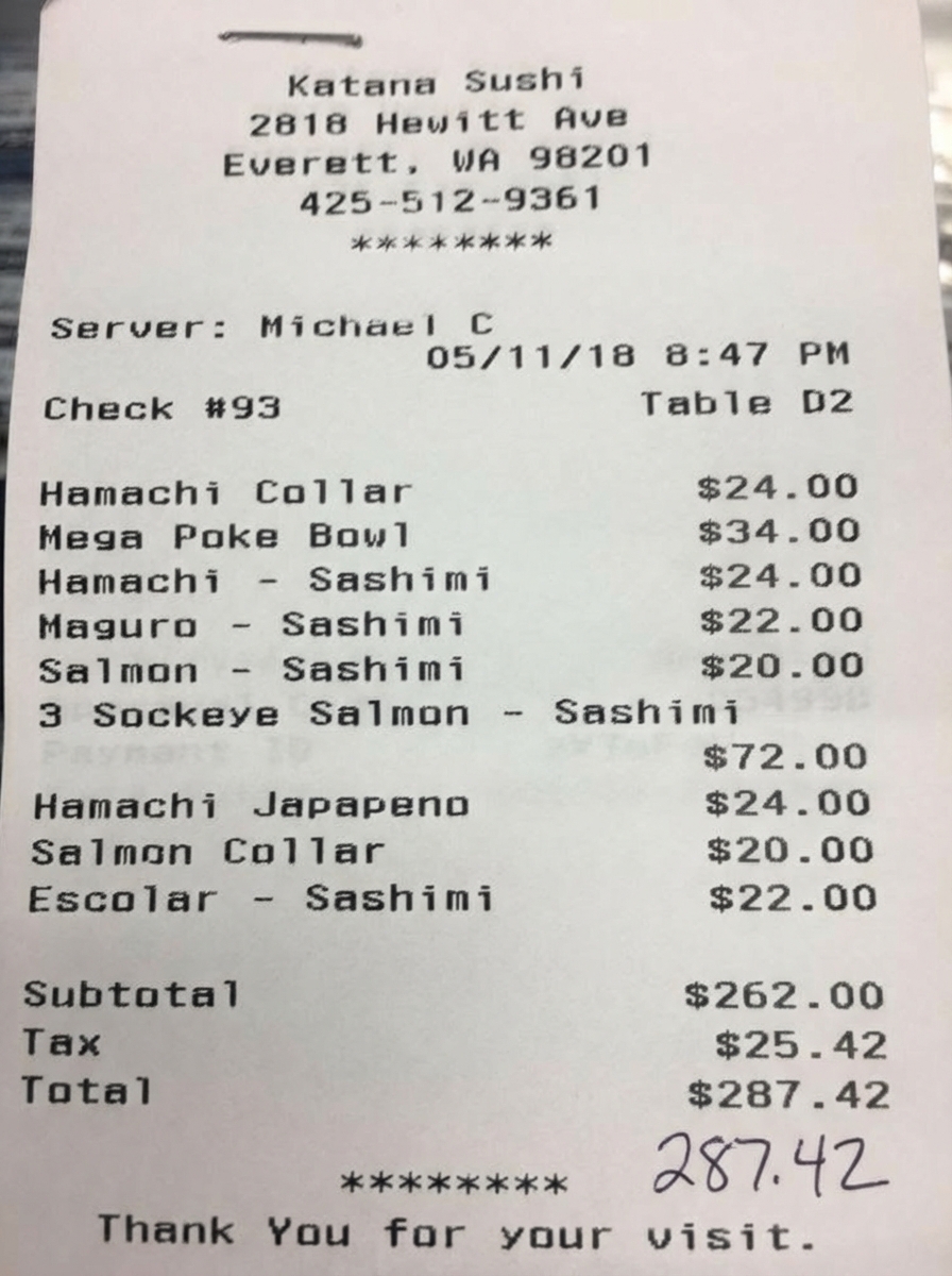 “Edit this receipt image to exactly double the total amount and all intermediate monetary values, including line item prices, subtotal, tax amount, total, and any other amount necessary. Keep everything else in the photo exactly the same.”