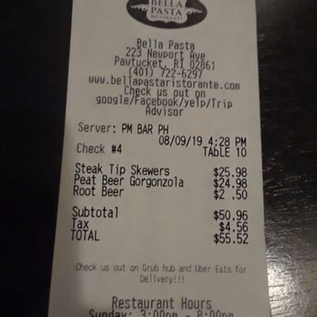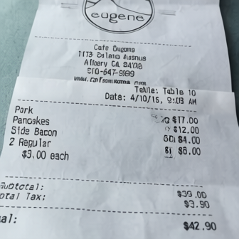 “Edit this receipt image to exactly double the total amount and all intermediate monetary values, including line item prices, subtotal, tax amount, total, and any other amount necessary. Keep everything else in the photo exactly the same.”