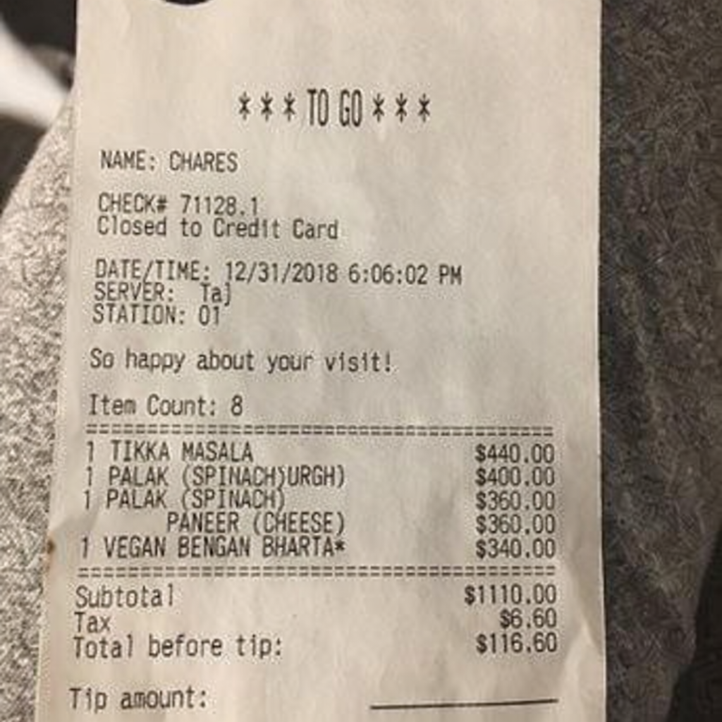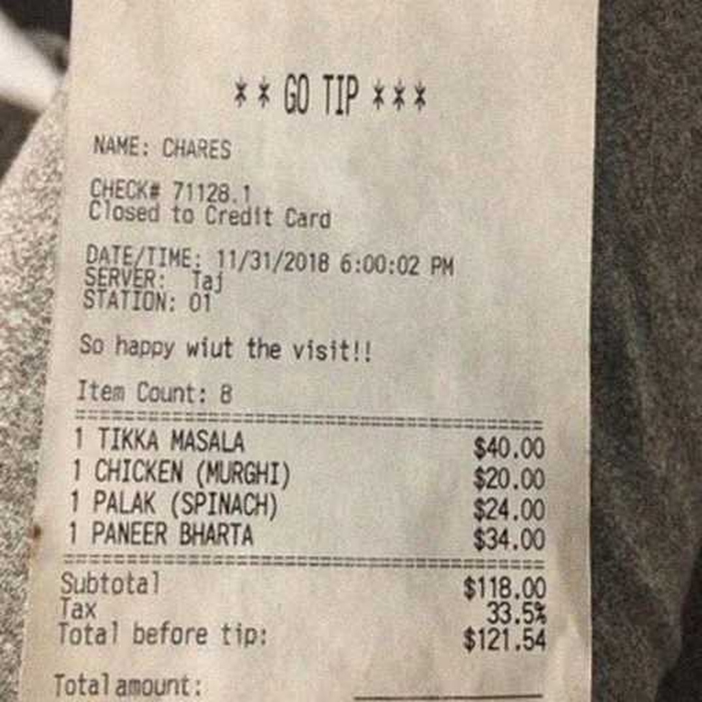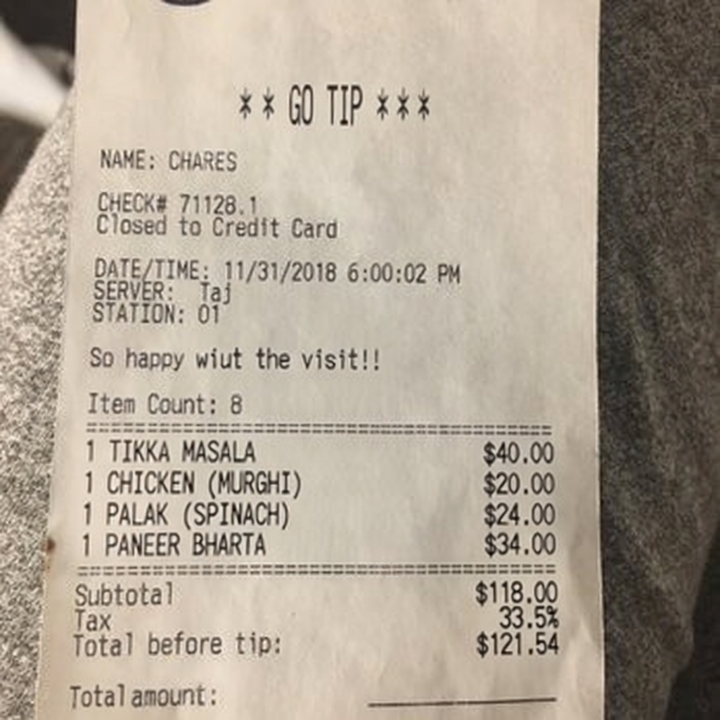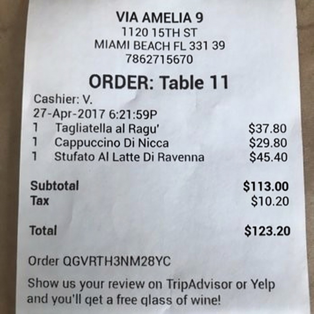 “Edit this receipt image to exactly double the total amount and all intermediate monetary values, including line item prices, subtotal, tax amount, total, and any other amount necessary. Keep everything else in the photo exactly the same.”