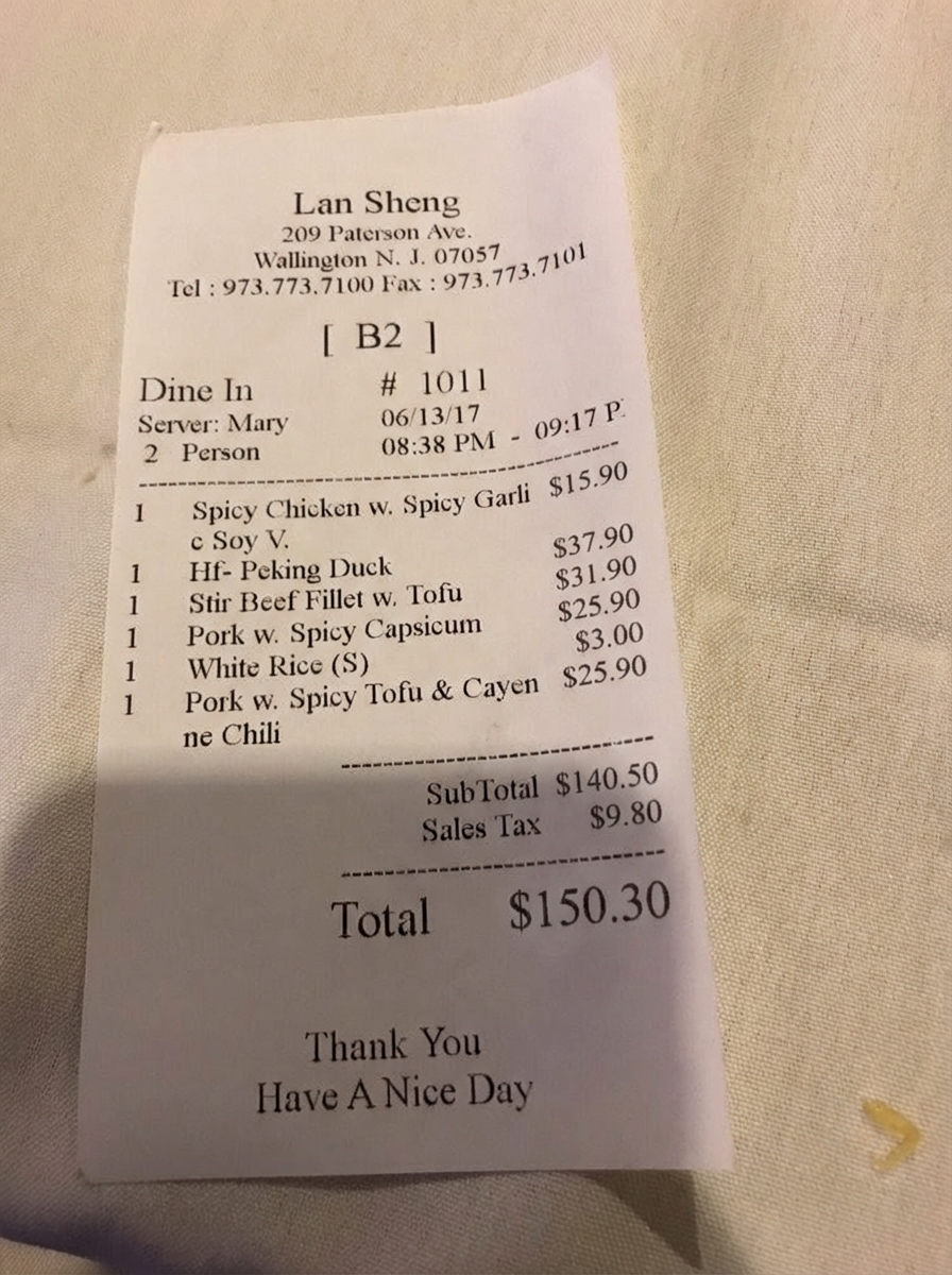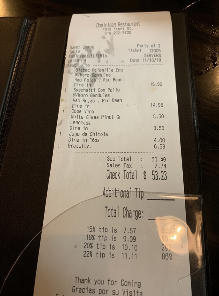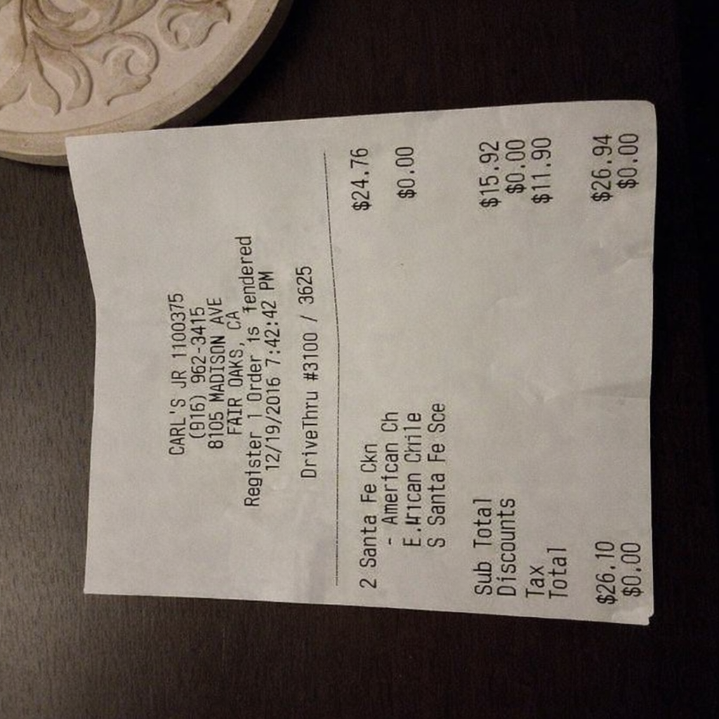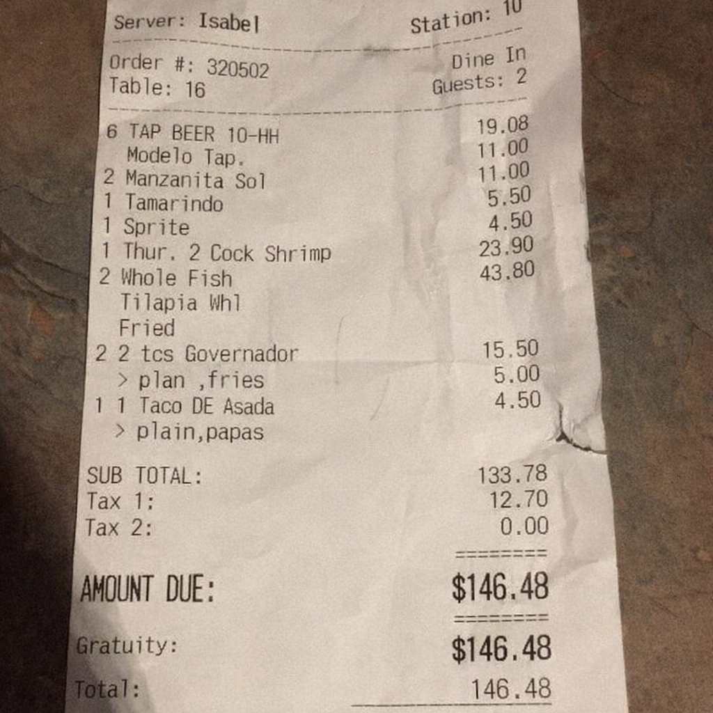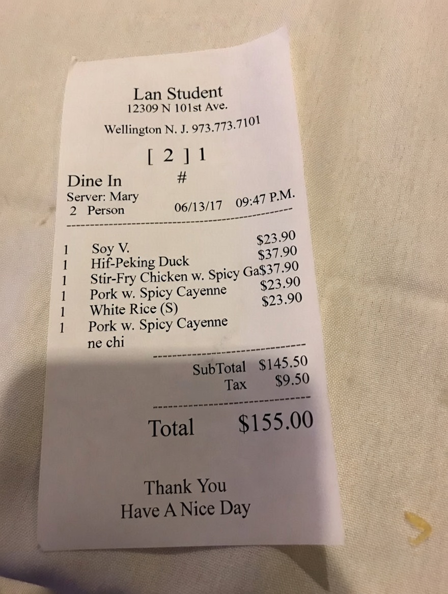 “Edit this receipt image to exactly double the total amount and all intermediate monetary values, including line item prices, subtotal, tax amount, total, and any other amount necessary. Keep everything else in the photo exactly the same.”