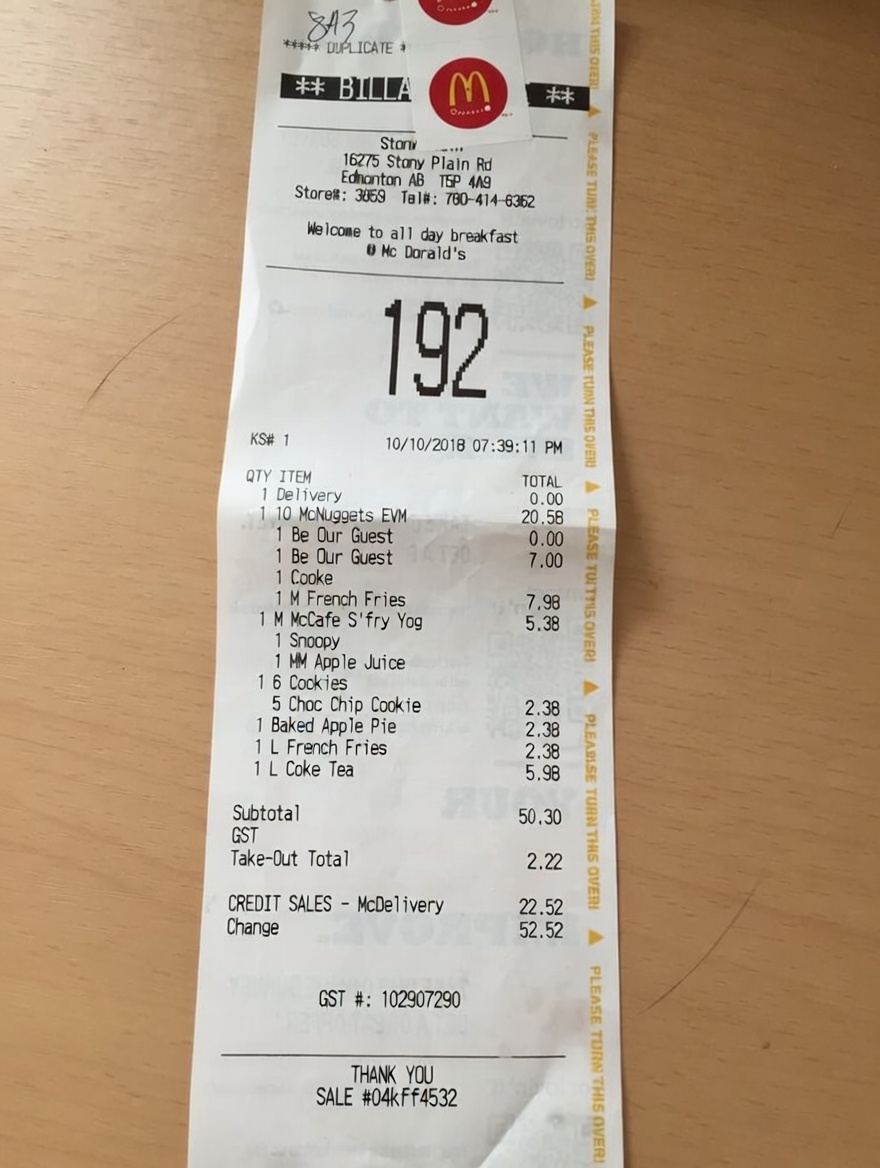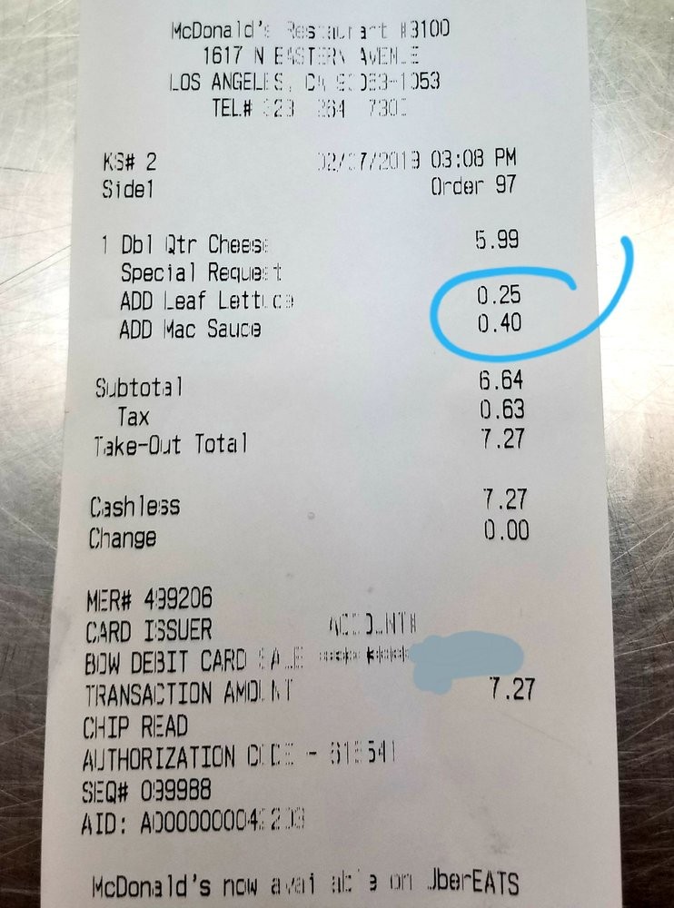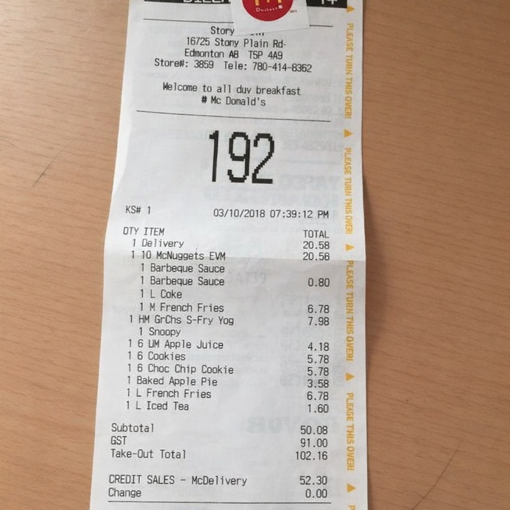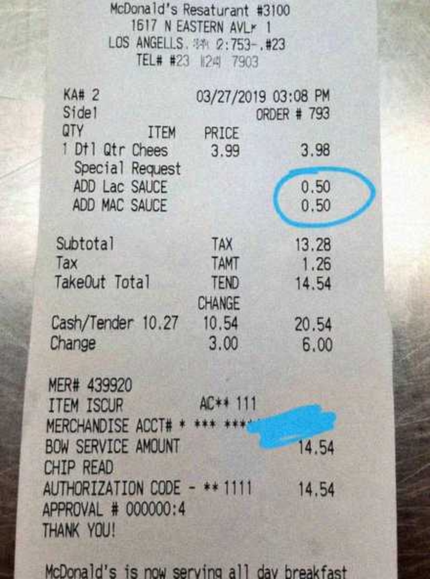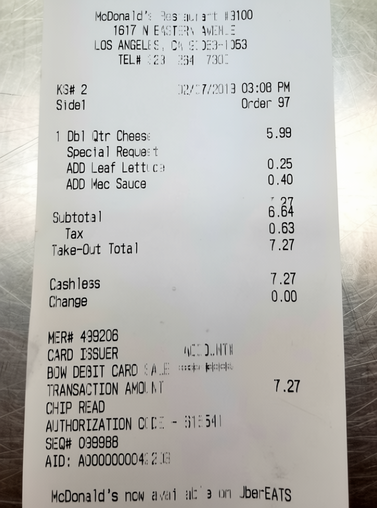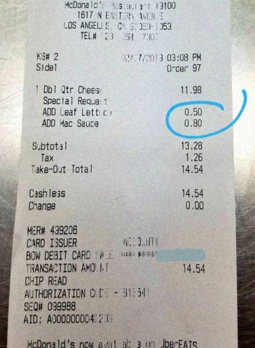 “Edit this receipt image to exactly double the total amount and all intermediate monetary values, including line item prices, subtotal, tax amount, total, and any other amount necessary. Keep everything else in the photo exactly the same.”