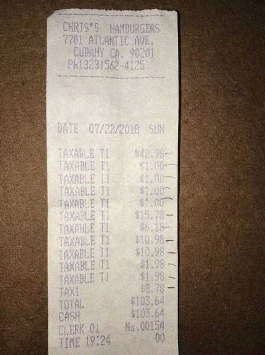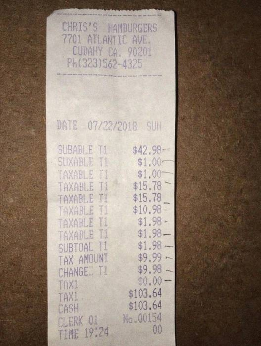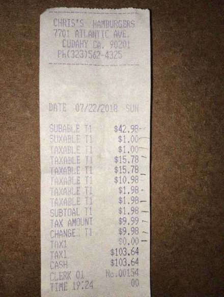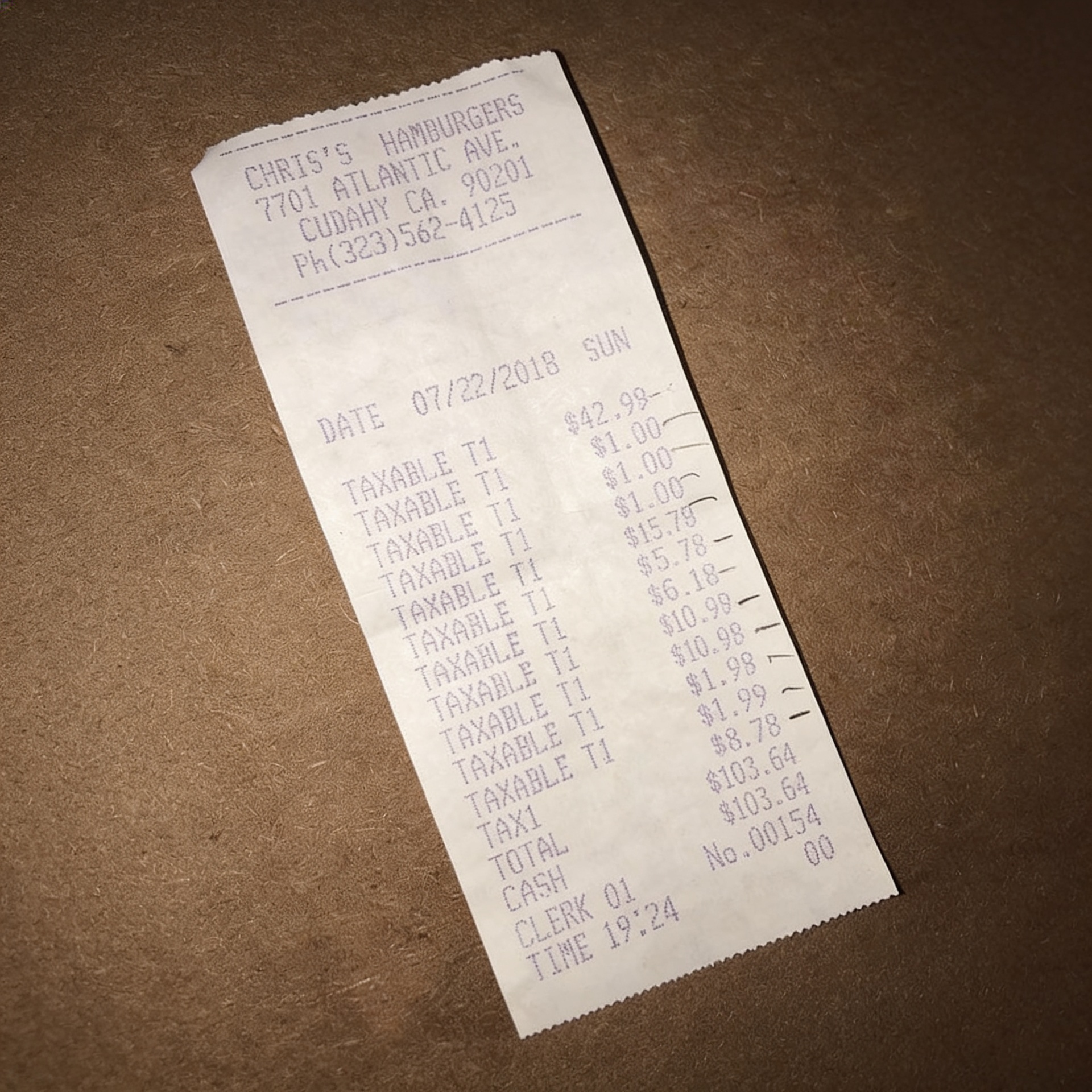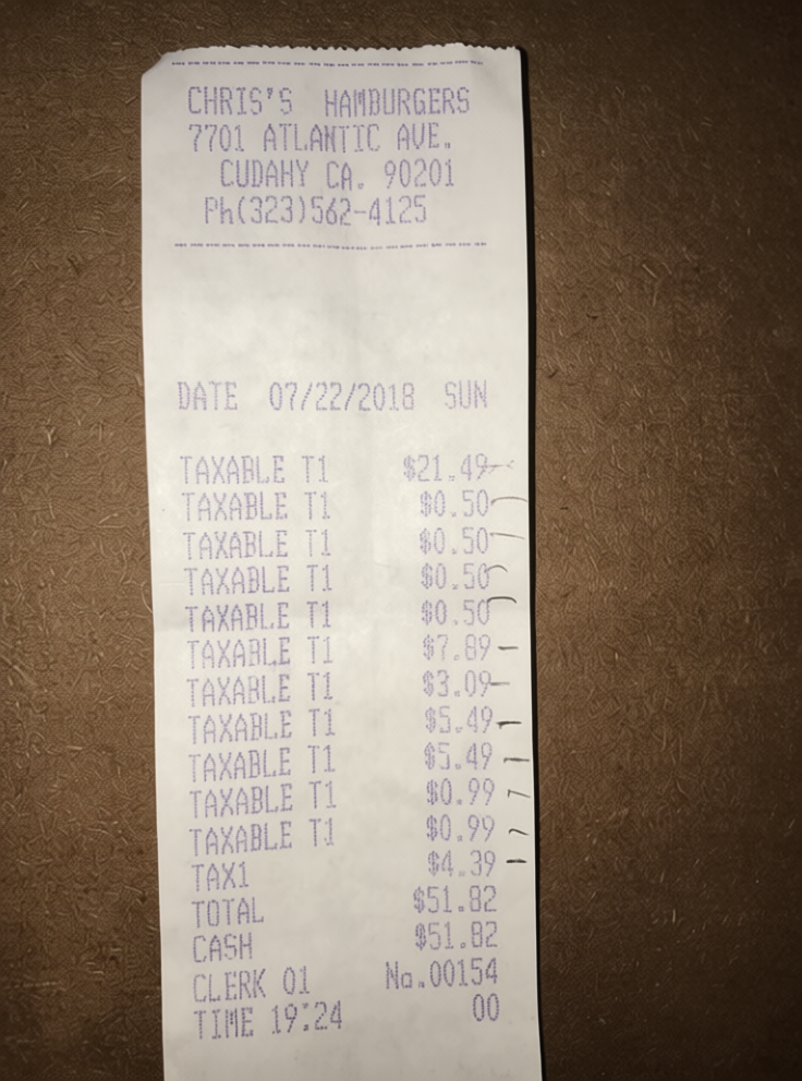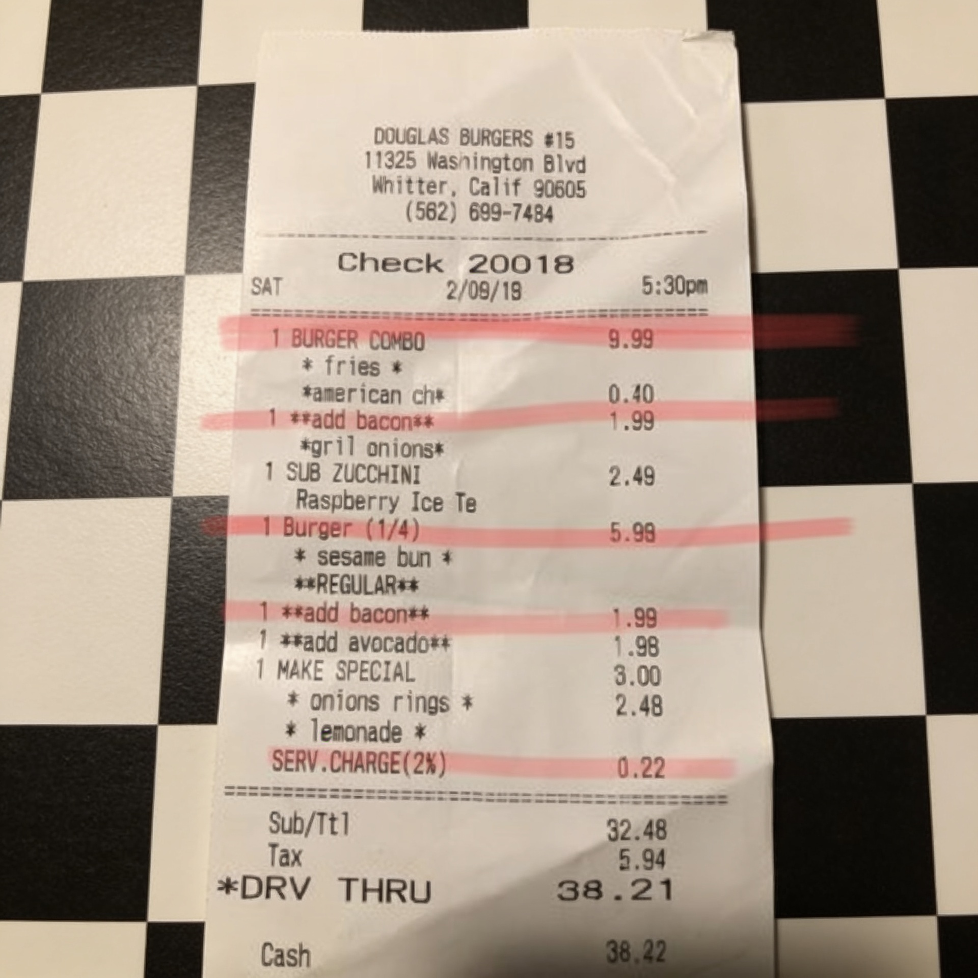 “Edit this receipt image to exactly double the total amount and all intermediate monetary values, including line item prices, subtotal, tax amount, total, and any other amount necessary. Keep everything else in the photo exactly the same.”