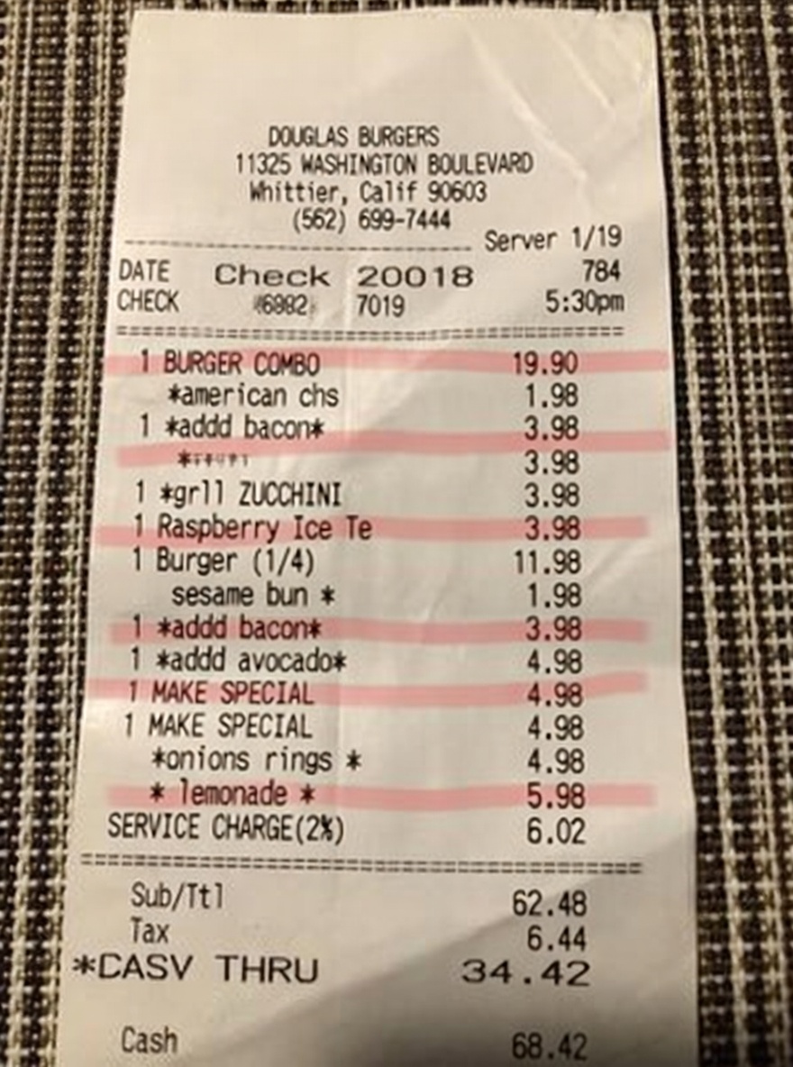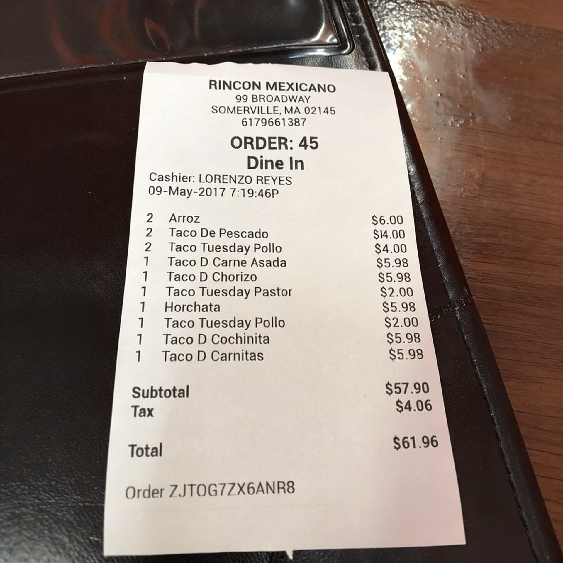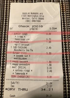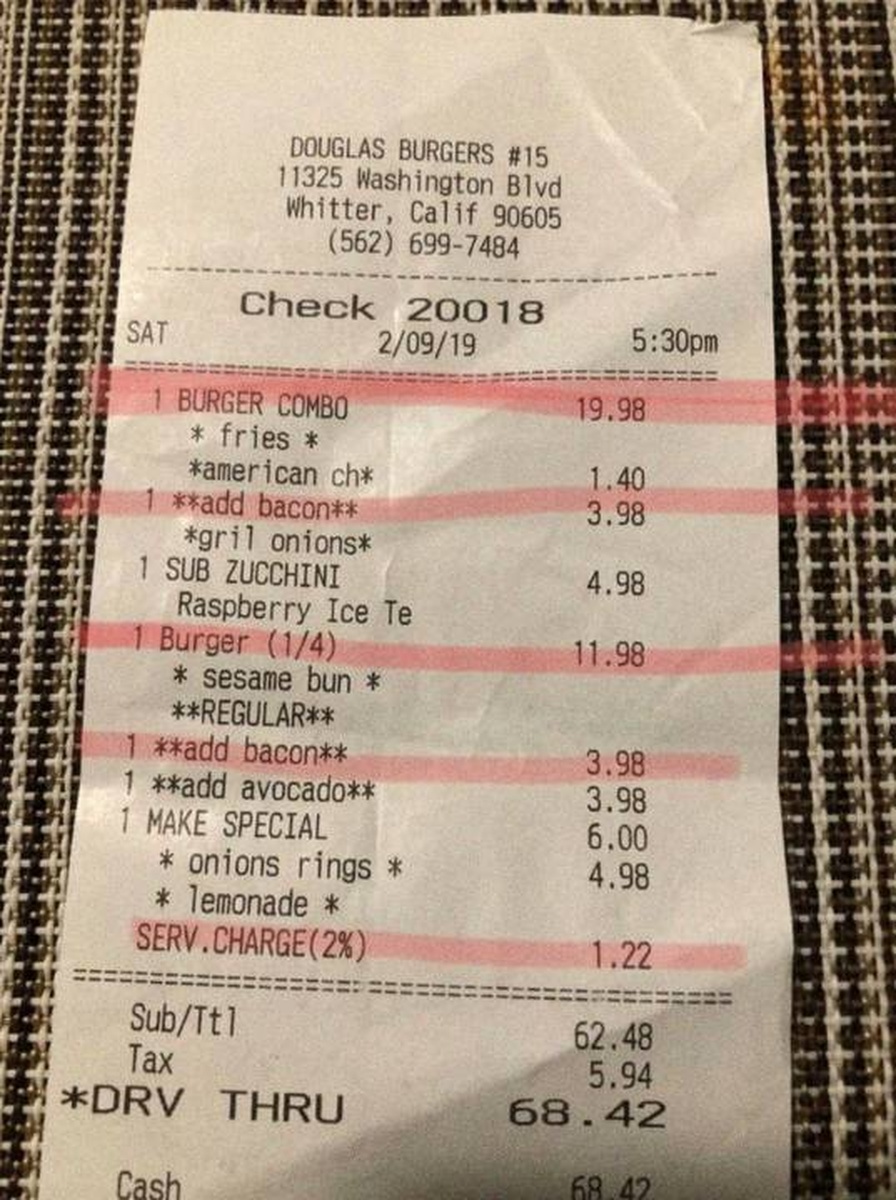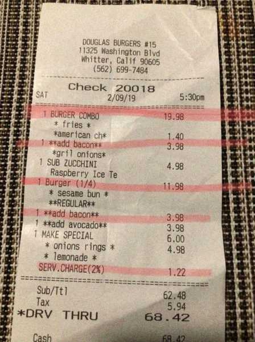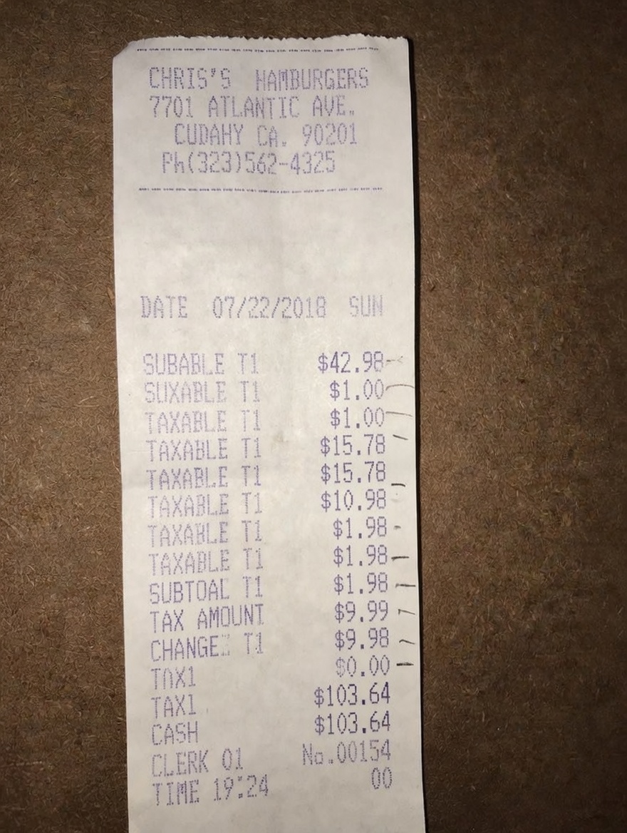 “Edit this receipt image to exactly double the total amount and all intermediate monetary values, including line item prices, subtotal, tax amount, total, and any other amount necessary. Keep everything else in the photo exactly the same.”