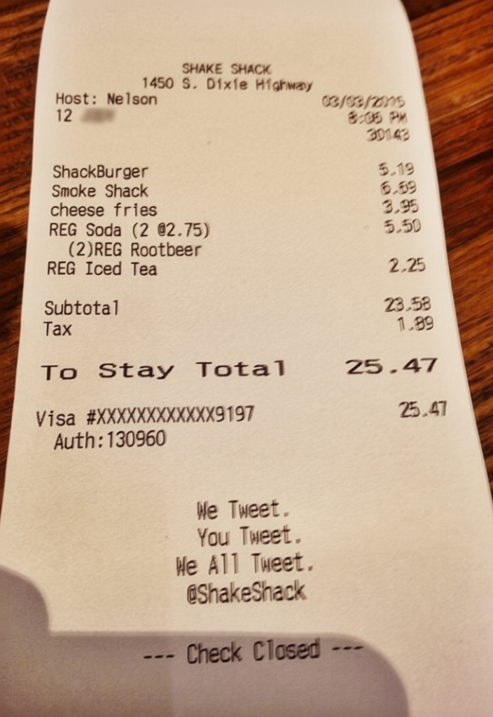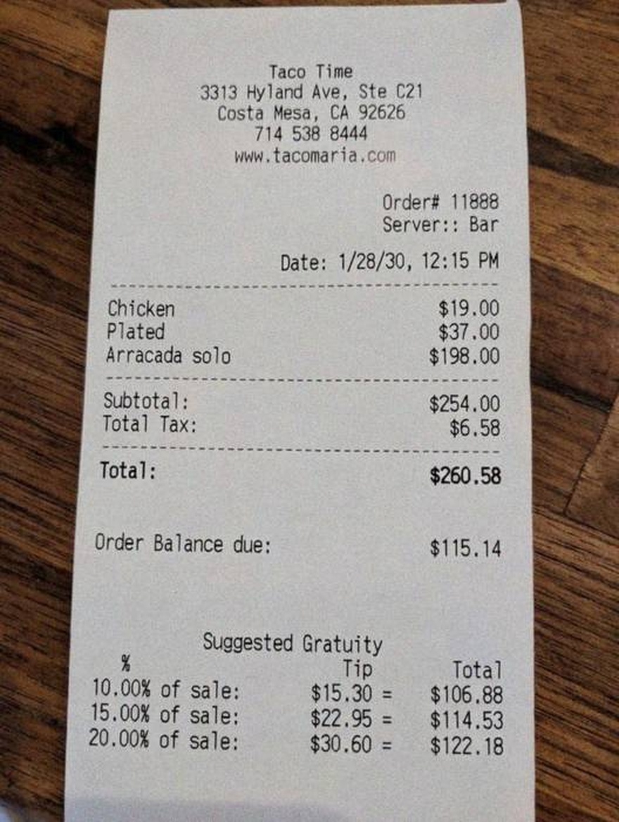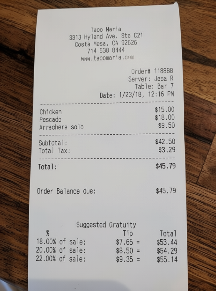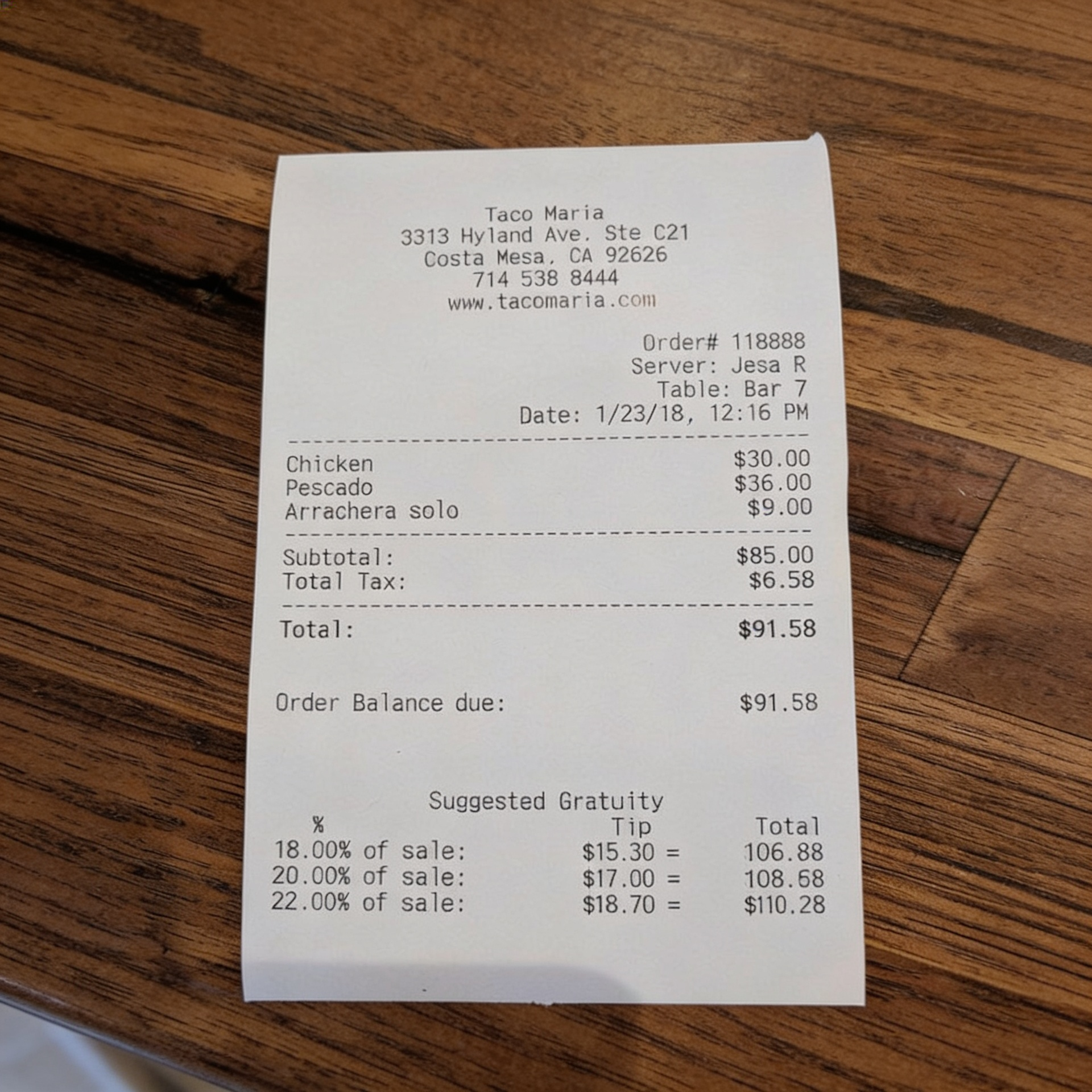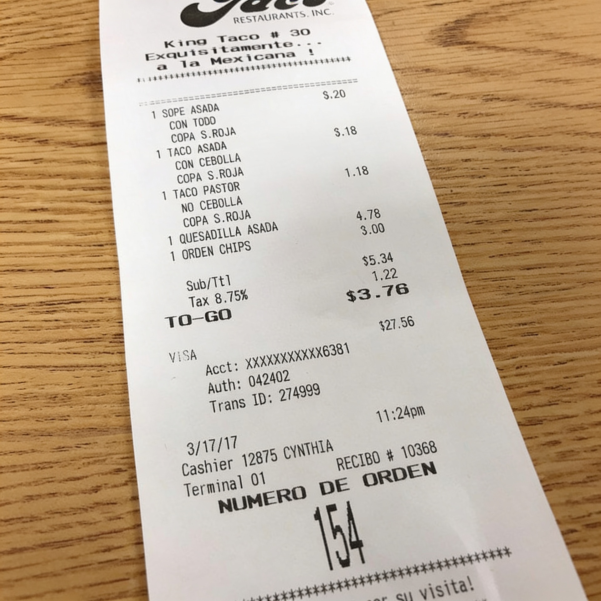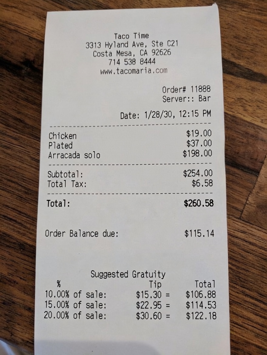 “Edit this receipt image to exactly double the total amount and all intermediate monetary values, including line item prices, subtotal, tax amount, total, and any other amount necessary. Keep everything else in the photo exactly the same.”
