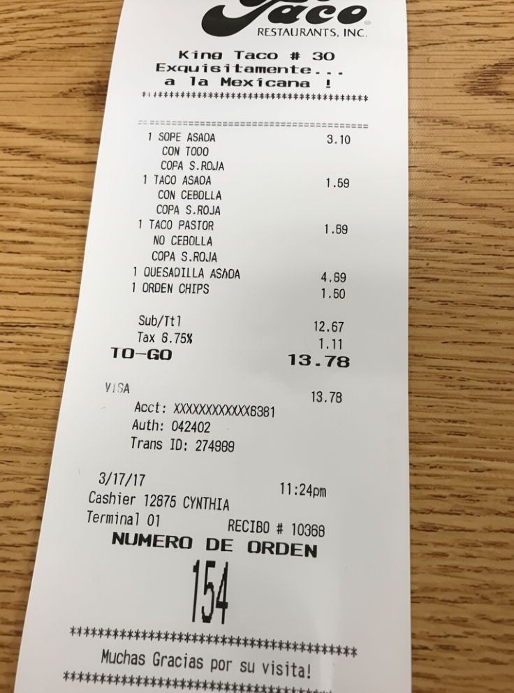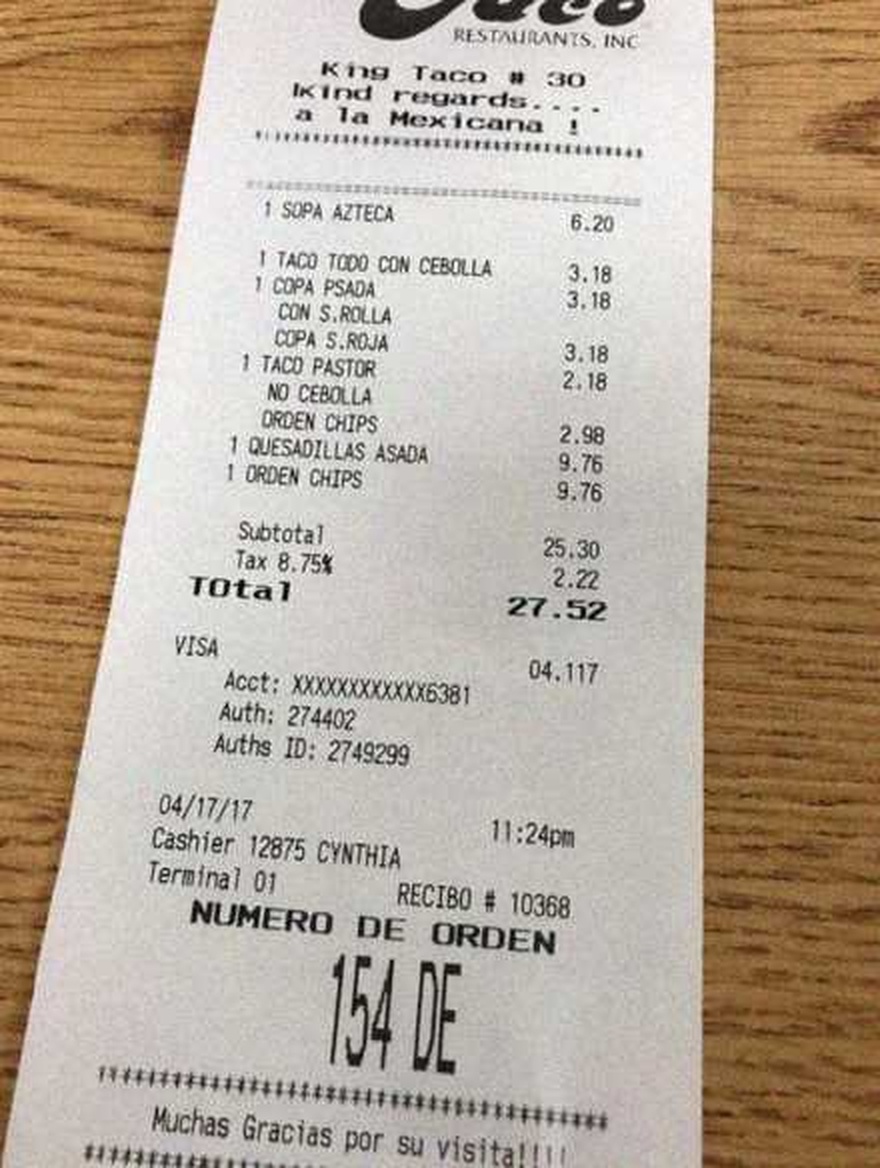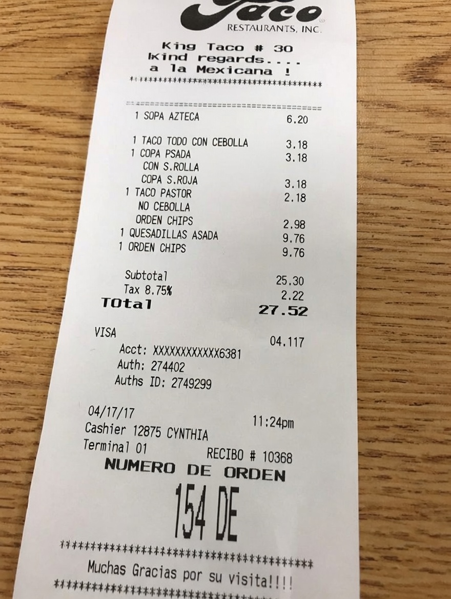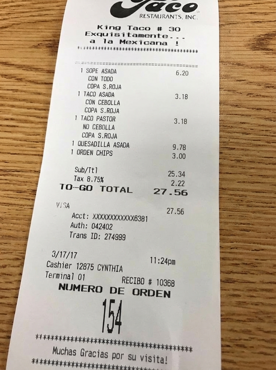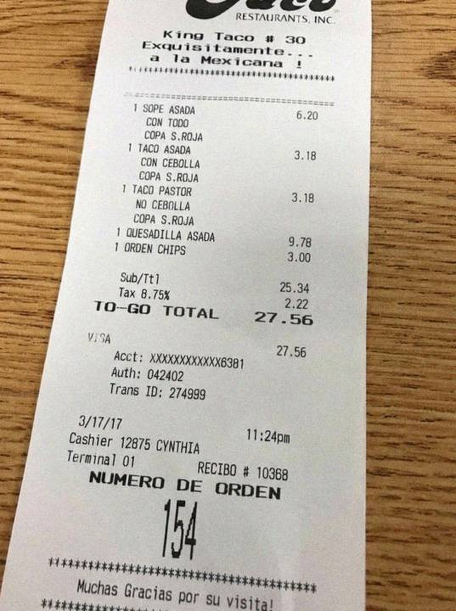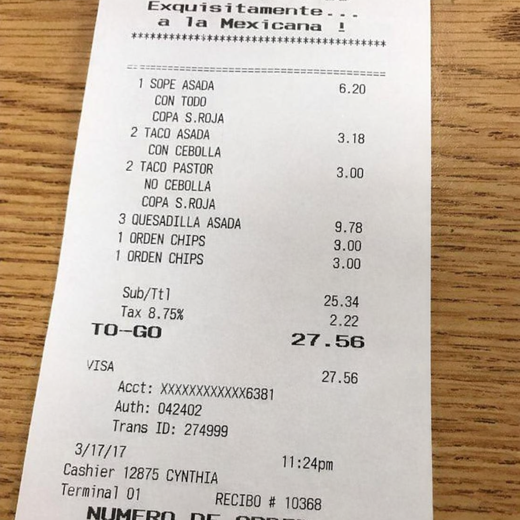 “Edit this receipt image to exactly double the total amount and all intermediate monetary values, including line item prices, subtotal, tax amount, total, and any other amount necessary. Keep everything else in the photo exactly the same.”